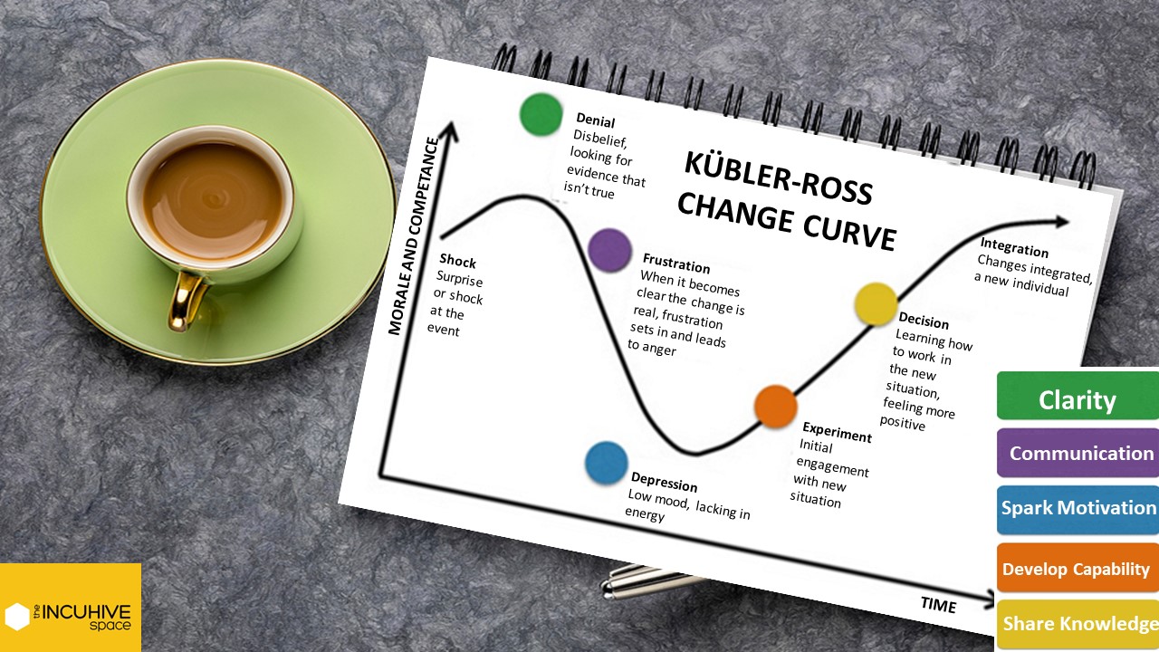George Scott-Welsh generously described his personal business journey and shared his adaptation of Kübler-Ross Five Stage Model. Part of it is acknowledging that the feelings of shock, grief, anger, fear, failure and depression are normal. And will pass. That working through the curve is the way out of the trough. Recognising that help is needed. That taking that first step is the hardest. Reaching out, seeking support is a show of strength. That someone will help, without judging. Being disciplined, taking the next small step, just one at a time, dealing with just one day at a time, will bring a return to positive feelings, a sense of control and a sense of achievement.